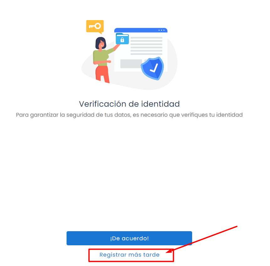 c - Omita la "Verificación de Identidad" pinchando en la opción "Registrar más tarde".